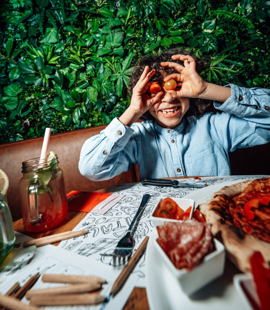 During a Happy Italy children’s party, the kids can draw and color as much as they want, play together, and then enjoy pizza with their friends.